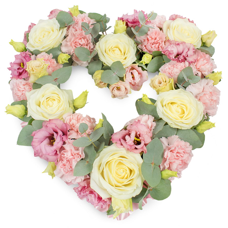Show your heartfelt emotions with our Charming Open Heart Flower Arrangement. Featuring a blend of white roses, pink carnations, pink lisianthus, and eucalyptus leaves, this bouquet is designed to capture beauty and grace.